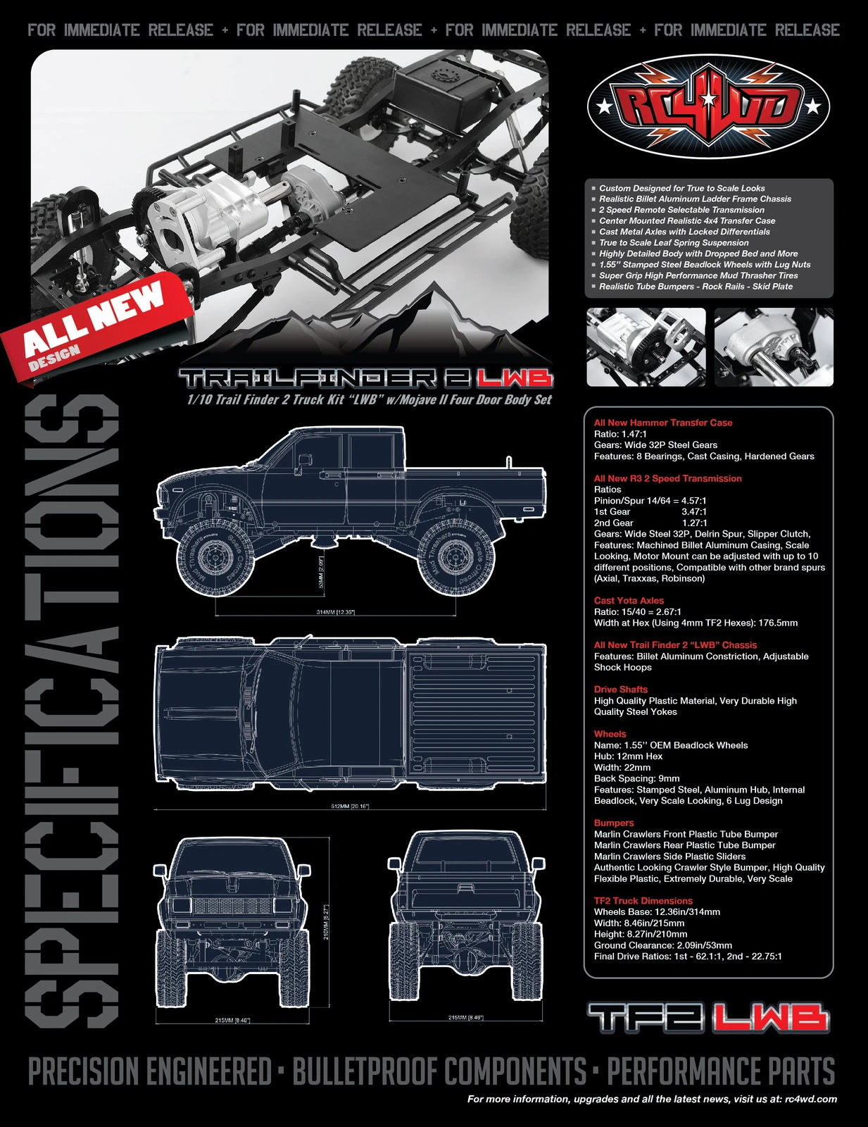 RC4WD Trail Finder 2 Truck Kit “LWB” w/ Mojave II Four Door Body Set